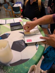 Unser Weg führte dann zum Gebiet der Pfarrei St. Hippolytus. Dort schauten wir uns den Schalke-Fan-Friedhof auf dem Sutumer Friedhof an. Eine erste kurze Pause machten wir dann an der Sutumer Kirche St. Clemens Maria Hofbauer. Von dort ging es die letzten Meter noch bis zur Veltins-Arena auf Schalke. Wir hatten uns den Schlüssel besorgt und konnten so in der Kapelle der Arena die zweite Statio halten. Es blieb auch noch Zeit, uns in der Arena umzusehen. So erhielten wir noch Impressionen von dem Spielfeldstollen und der Umkleidekabine unserer Schalker Mannschaft.