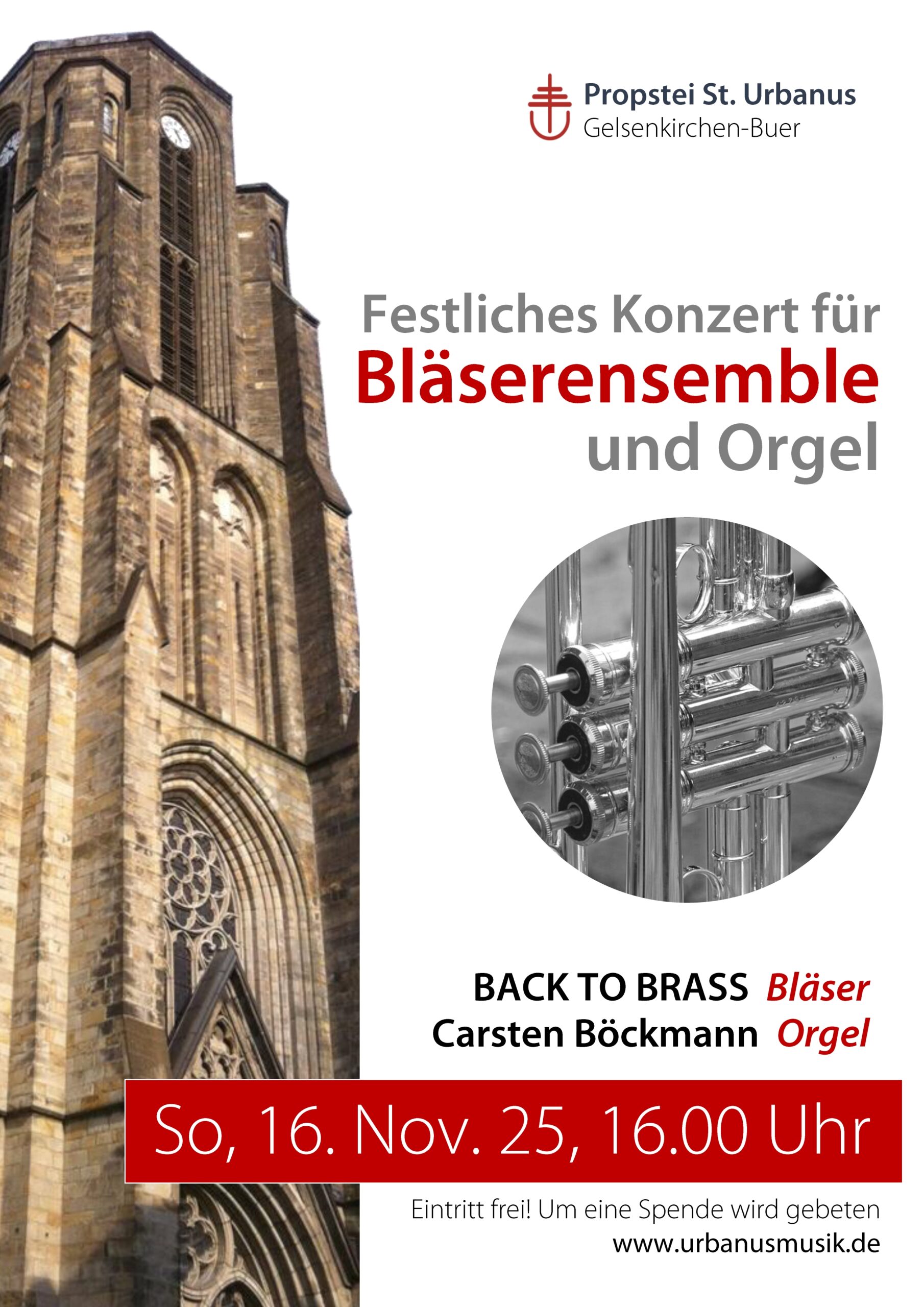 Des Weiteren laden wir am 16.11., 16.00 Uhr zum Festlichen Konzert für Bläser und Orgel (siehe Plakat)