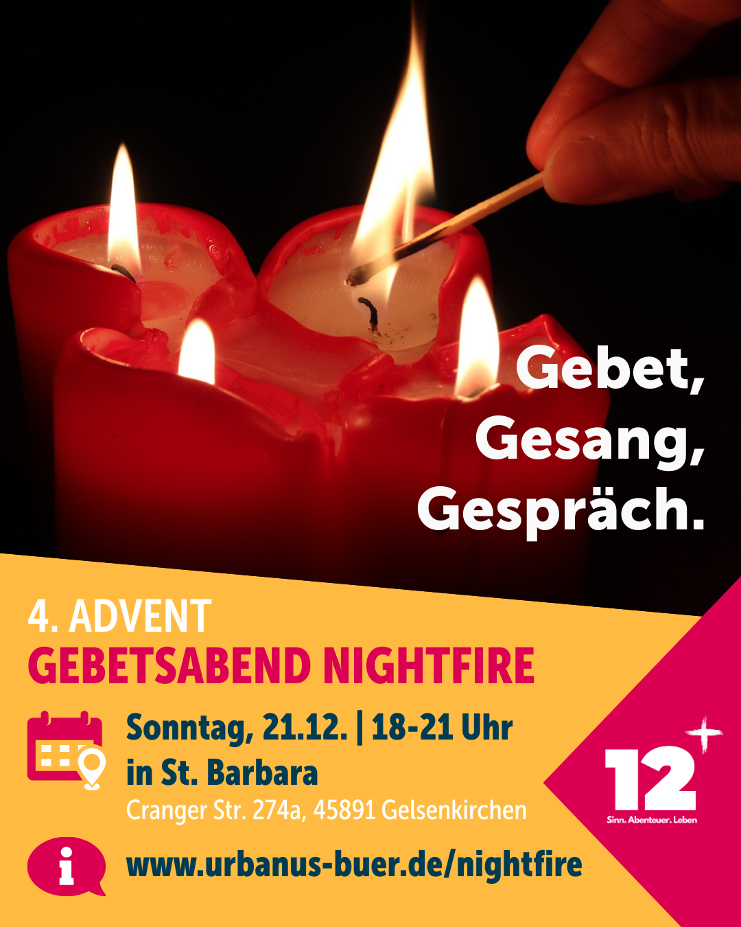 Du möchtest Dich auf Weihnachten einstimmen? – Dann komm am 4. Advent zum Gebetsabend Nightfire nach St. Barbara!
